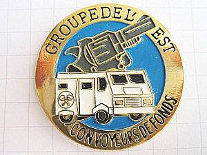 写真はピンズマルシェのピンバッチ、ピストルと現金輸送車。
