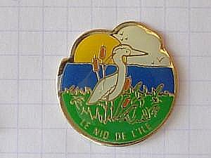 写真はピンズマルシェのピンバッチ、海と太陽と白い鳥です。
