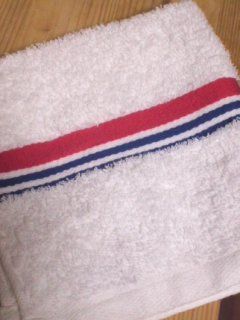 赤と青のラインが入った白いウォッシュタオルも買ってみました。