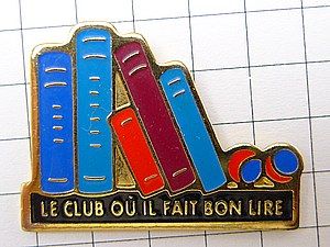 写真はピンズマルシェのピンバッジ、本棚に並んだ本。