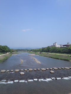 長方形の京都地図でいうと、左方向へ向かって鴨川を渡ります。