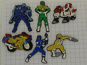 写真はピンズマルシェのピンバッジ、パワーレンジャーのセット。