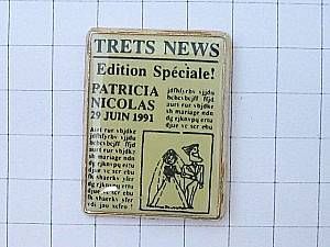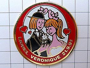 写真はピンズマルシェのピンバッジ、結婚のニュース。