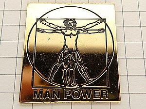 写真はピンズマルシェのピンバッジ、レオナルド・ダ・ヴィンチ画の「ウィウス的人間図」。