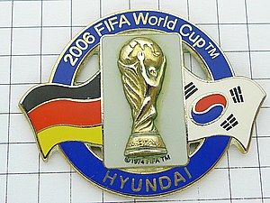 写真はピンズマルシェのピンバッジ、サッカーワールドカップ・ドイツ大会。ヒュンダイ現代自動車のスポンサーピンズ。