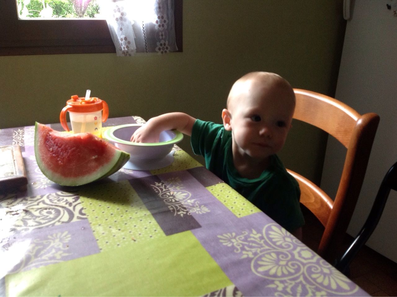 シャンパーニュ瓶とフランス人の男の子