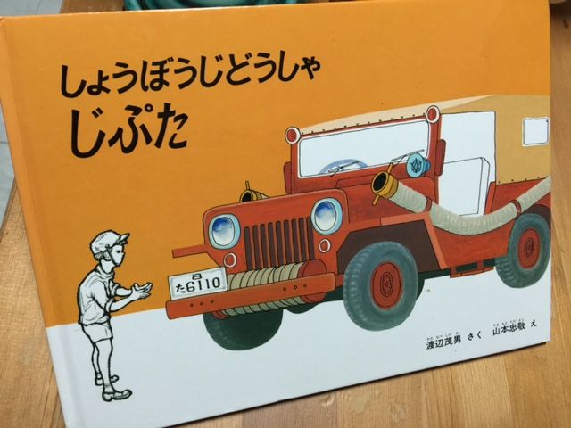 この本、『しょうぼうじどうしゃ じぷた』。私が子供のころすでにあったように思うので、ロングセラーですよね。