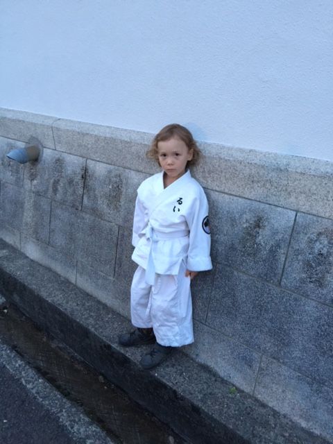 お寺の白壁の前で。