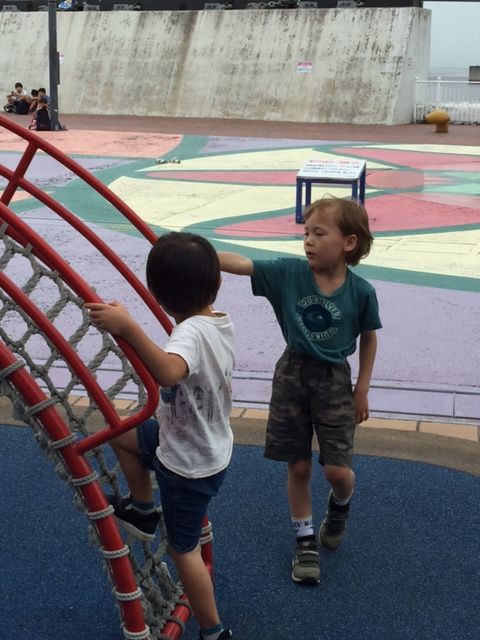 と、多分思ってる。遊具の前で、ルイはTシャツをイン。